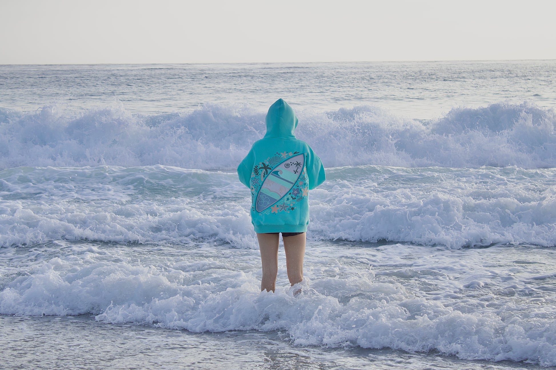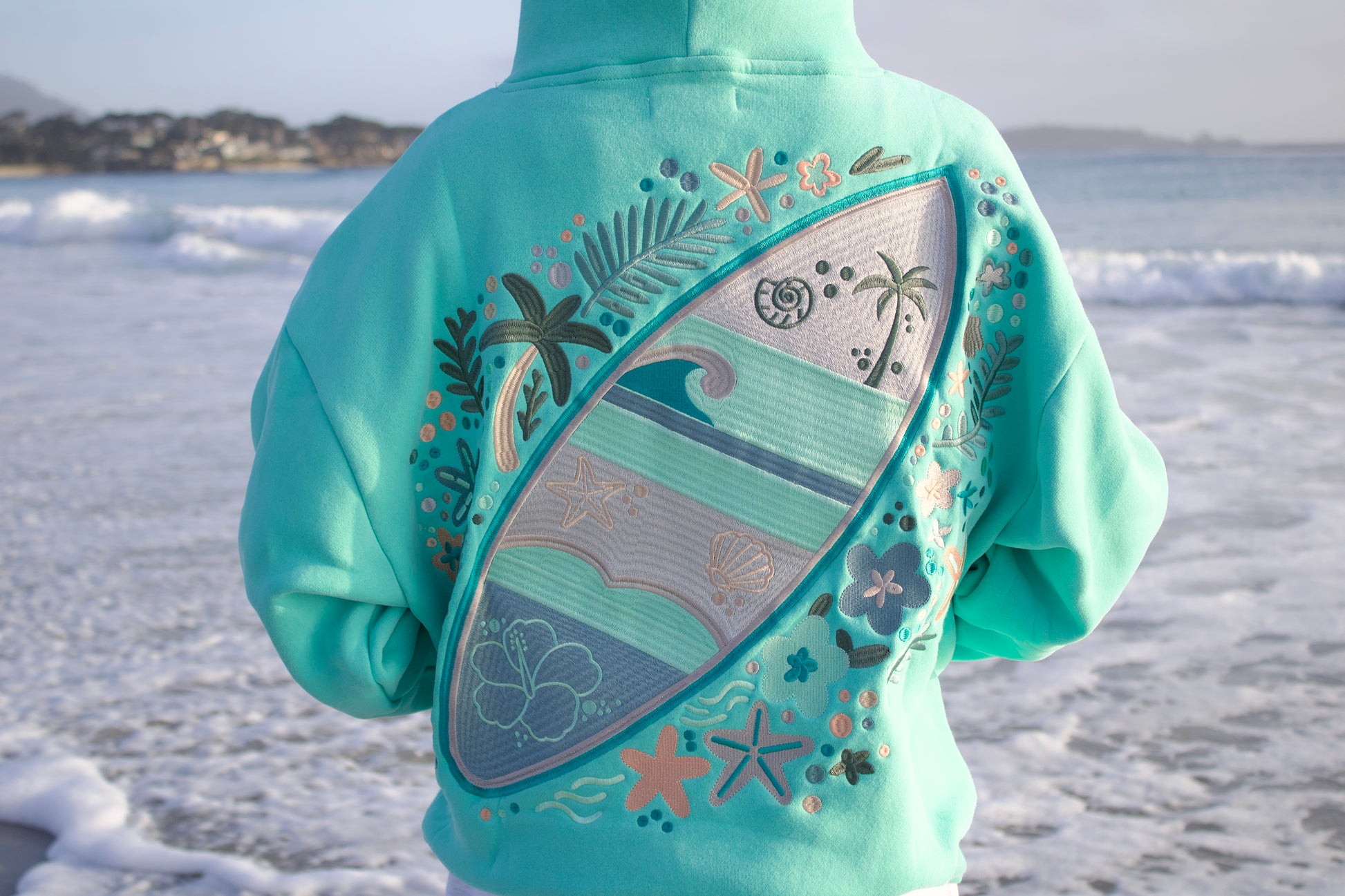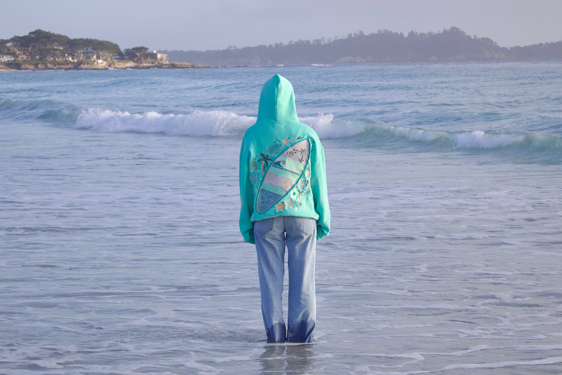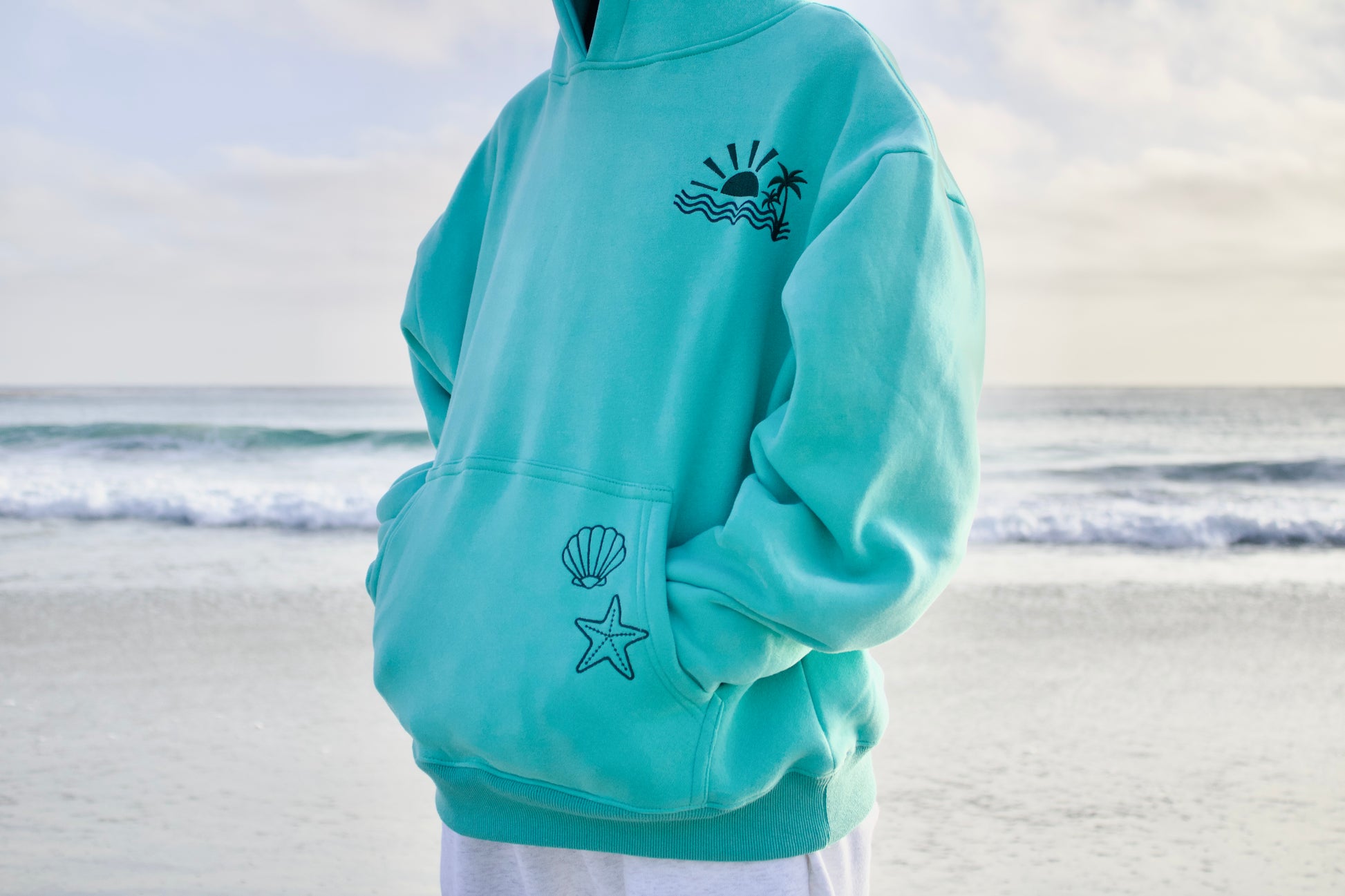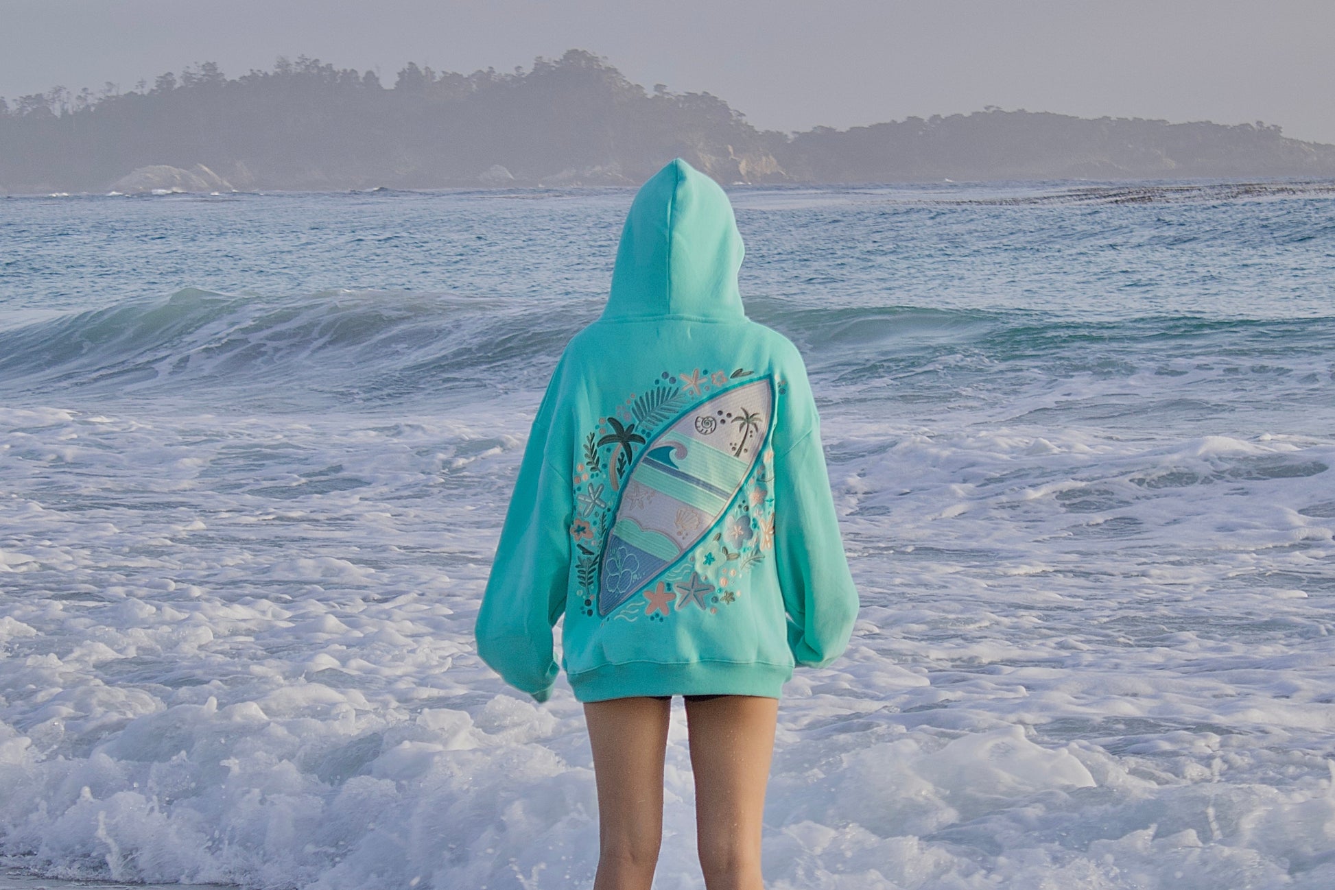 The Starboard Hoodie features our signature embroidered front logo and a detailed surfboard + starfish graphic on the back. Made from an ultra-soft 80% cotton, 20% polyester blend, it’s warm, breathable, and easy to live in. Ribbed cuffs and a relaxed drop-shoulder fit make it feel like something you’ll never want to take off.