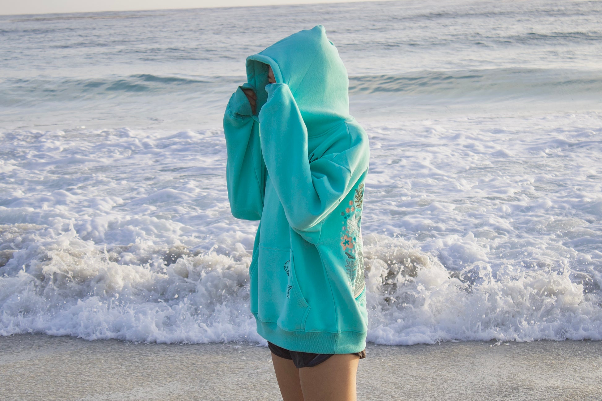 "Starboard" Oversized Embroidered Hoodie in Seaglass